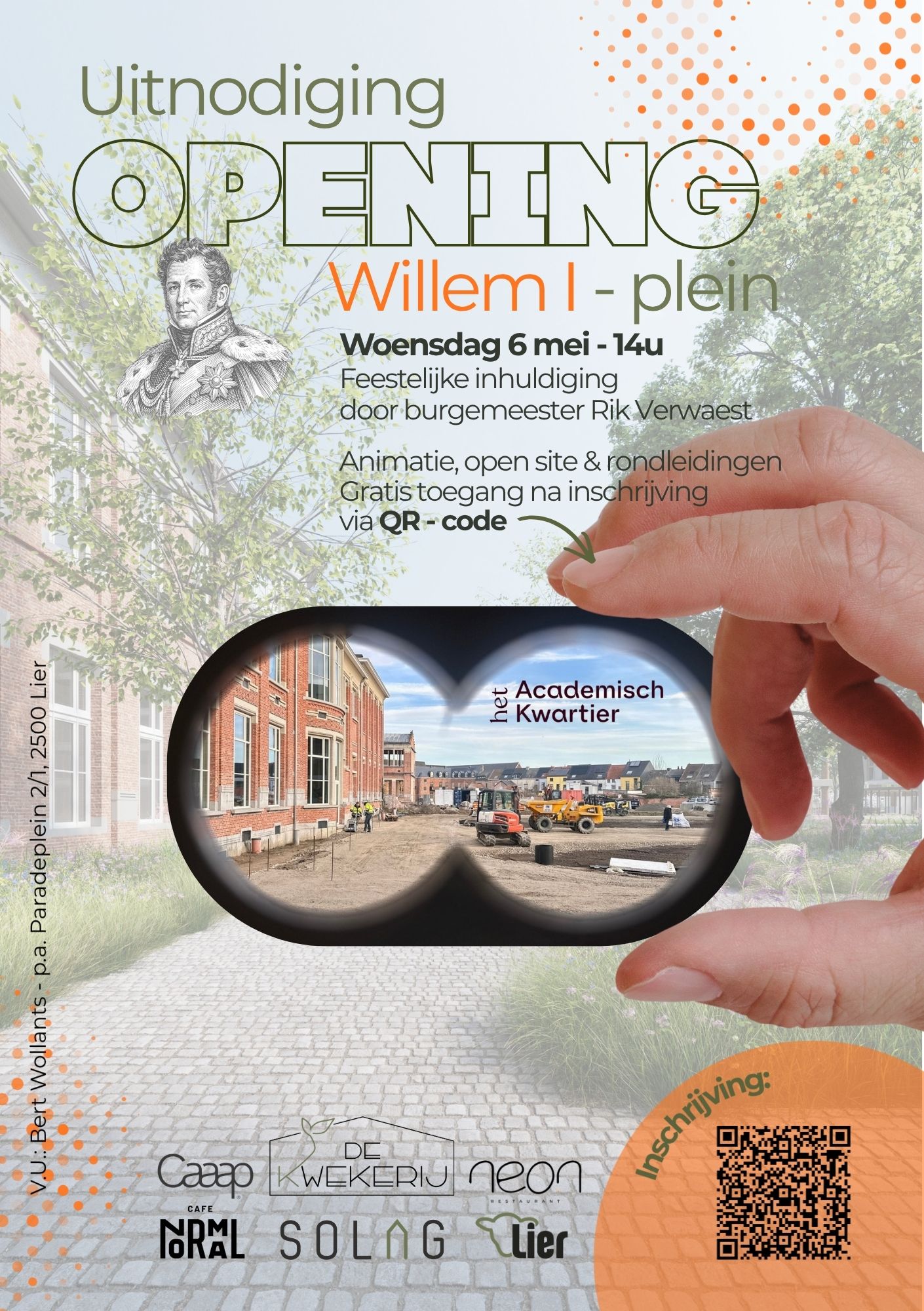 Op woensdag 6 mei om 14u00 vindt de feestelijke opening van het Willem I-Plein op Het Academisch Kwartier in Lier plaats.